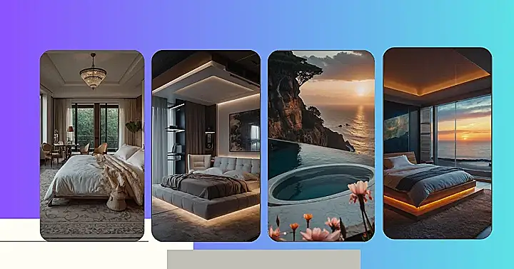 Imagine waking up in this room! The sun’s just starting to peek over the horizon, painting the sky in shades of pink and orange. It’s like a giant, natural masterpiece right outside your window. You’re curled up in a comfy chair, maybe reading a book or just enjoying the view. It’s peaceful and quiet, except for the gentle breeze rustling the curtains. You’re feeling relaxed and happy, ready to start your day.