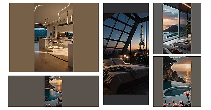 Imagine waking up in this room! The sun’s just starting to peek over the horizon, painting the sky in shades of pink and orange. It’s like a giant, natural masterpiece right outside your window. You’re curled up in a comfy chair, maybe reading a book or just enjoying the view. It’s peaceful and quiet, except for the gentle breeze rustling the curtains. You’re feeling relaxed and happy, ready to start your day.