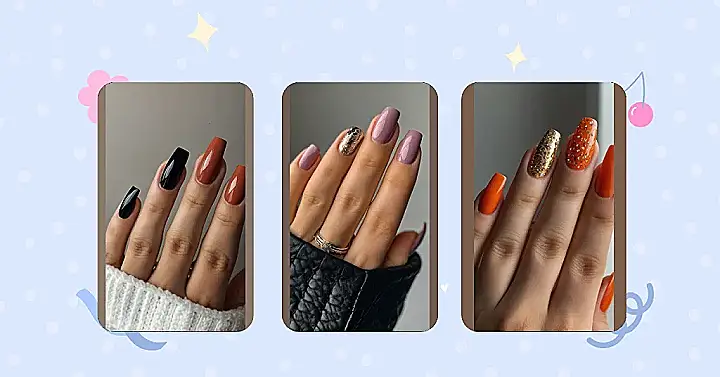 Maybe you can even try adding some tiny pumpkins or leaves to your nails for extra fall flair! They’d look super cute, and you’ll be the queen of cool (and chic!) nails. Don’t forget to show off those fancy nails with a comfy sweater, just like in the picture!