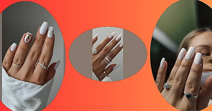 Imagine you’re at a fancy dinner with your friends, and you accidentally spill your drink all over yourself. You think, “Oh no! My clothes!” Then you look down at your hand and see your perfectly polished white nails, shiny and spotless. No stain on those bad boys! You’re saved! But wait, there’s more! Your beautiful white nails are also perfectly framed by two dazzling rings. It’s a look that screams “I’ve got this!” and makes you feel confident and ready to take on the world, spilled drink or not!