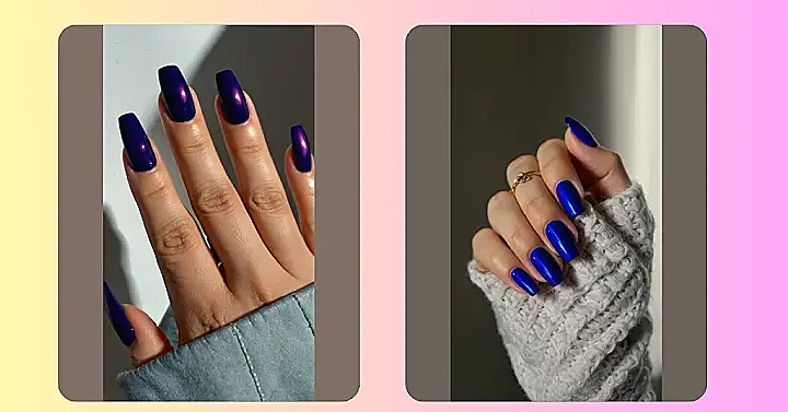 I can almost hear the nails saying, “Hey, look at me! I’m not just any blue, I’m a shimmery, almost-purple kind of blue. I’m the color of the night sky after a good thunderstorm.” Maybe they should team up with a cool blue outfit – that would make them look even more awesome! Who knows what kind of adventures these blue beauties will go on next? The possibilities are endless!