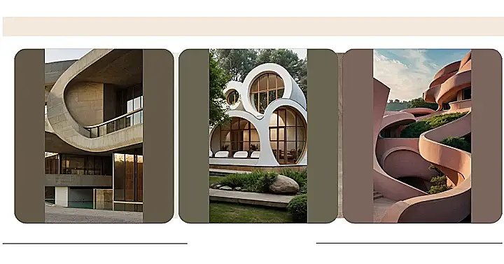 Imagine a house that’s as smooth and flowing as a river. That’s what organic architecture is all about – buildings that look and feel like they’re part of nature. This picture shows a room with wavy ceilings and curved walls. The couch even looks like a giant, comfy wave! It’s like the building is breathing, and it makes you feel relaxed and at peace.