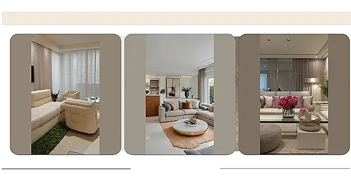 But what’s really catching my eye are those cool rugs! They’re like a bunch of different patterns and colors all thrown together, but somehow it works perfectly. It’s like the designer just went wild with their creativity, and the result is a living room that’s both stylish and comfy. I wouldn’t mind spending some quality time in this place!