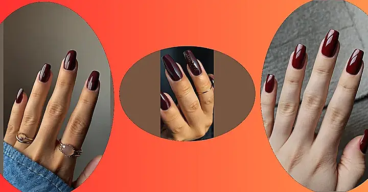 The picture shows some seriously stylish nails. That deep red color is like a warm hug for your fingers. It’s totally the perfect shade for fall, when everything starts turning those beautiful warm colors, like leaves and pumpkins. Imagine walking around with these nails and all your friends being like, “Wow, those nails are so fire!” It’s like a little pop of personality that screams, “Fall is here, and I’m ready to rock it!”