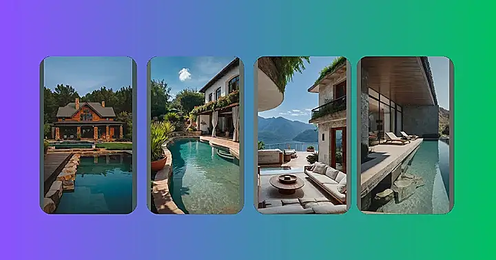 But the best part? The pool! It’s so clear and blue, it looks like it could be a real swimming hole. You can even see the reflection of the house in the water, which makes the whole thing look even more magical. It’s the perfect place to hang out on a hot day, or even just to relax and enjoy the peace and quiet. I bet the owner throws some epic pool parties!