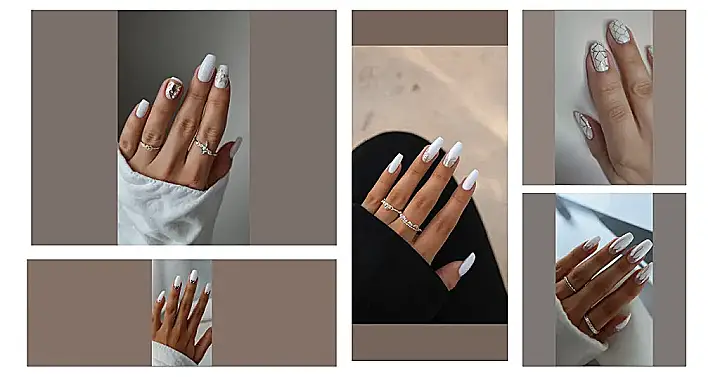 For those moments when you’re feeling daring, why not pair your milky whites with a touch of black or blue? These contrasting elements will take your nail game to a whole new level, creating a look that’s captivating and chic. We say, go bold or go home! It’s all about expressing yourself through your fingertips.