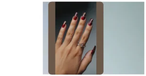 These nails are totally fall-ready! The deep red is like a cozy sweater on a chilly day, and the glittery accent nail is like those cute little pumpkins you see at the farmers market. It’s like a fancy version of the fall colors you already love, but with a little sparkle!