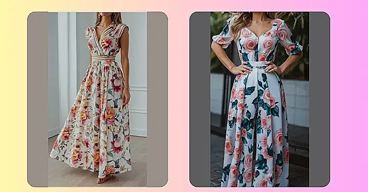 This dress is like a giant, flowing bouquet of roses! It’s perfect for strolling through European streets in the fall, where the air is crisp and the leaves are changing colors. Imagine yourself sipping coffee in a charming cafe, or exploring a cozy market, all while looking absolutely stunning in this romantic floral dress. It’s the kind of outfit that makes you feel like you’re in a fairytale, even if you’re just grabbing groceries!