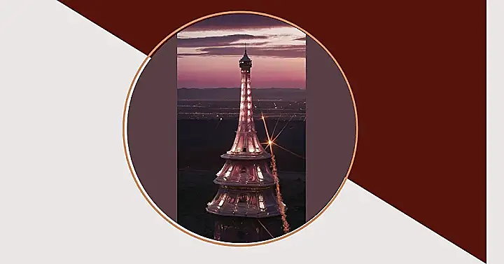 This tower looks like it’s straight out of a fairytale, all sparkly and pink, even the clouds seem to be pink too! It’s kind of like someone took the Eiffel Tower and gave it a fancy makeover, like a giant dollhouse for adults. Imagine climbing up those stairs!