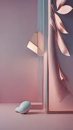 This image is like a scene from a dream – a pink and blue wonderland with mysterious shapes and shadows. It looks like someone’s about to paint the room, but they left a strange little bird egg thing lying around. Maybe it’s part of the design? Or maybe it’s a clue! You know, like a secret code or something.