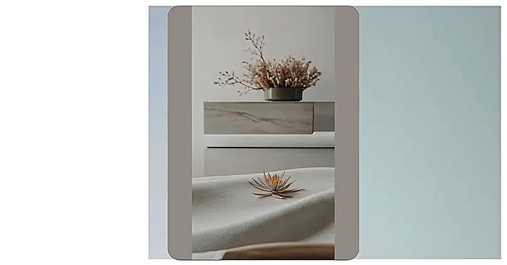 Imagine waking up to a simple and elegant room, just like in this picture. The smooth white fabric looks so soft you’d want to sink right into it! There’s a pretty flower, almost like a star, resting on top – just a little pop of color to brighten things up. The rest is just a hint of dried flowers and a soft, natural wood shelf. It’s a minimalist’s dream! Everything’s calming and peaceful.
