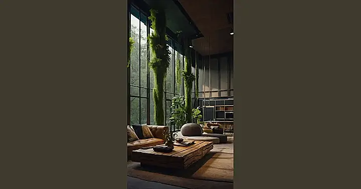 The big windows let in tons of sunshine, and you can almost feel the breeze coming through the leaves. Plus, there’s a giant, tree-trunk-like coffee table that’s perfect for playing board games or just staring at the gnarly wood. It’s like stepping into a nature-themed magazine come to life, but without all the bugs!