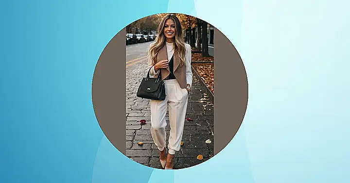This outfit is like a hug from your favorite sweater, but with way more style! Just look at those cozy boots and the long, flowing coat. It’s the perfect way to say goodbye to summer and hello to pumpkin spice lattes (and maybe even a little bit of pumpkin pie). The white pants and sweater are a classic combo that looks super sleek and polished. It’s like the outfit version of your favorite go-to comfy jeans, but better! You can totally rock this look, whether you’re heading to school, hanging out with friends, or just running errands.