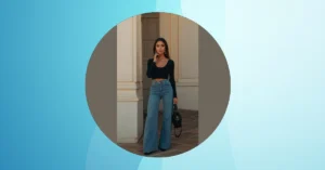 This lady knows how to rock a pair of trousers! Her blue flares are like a statement, saying, “Hey, look at me! I’m stylish and confident, and I’m not afraid to show it!” The black turtleneck and the cute little bag add just the right amount of pizzazz to complete the look. You know, sometimes it’s the simplest things that make the biggest difference!