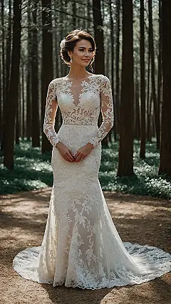 Look at this absolute showstopper! This dress isn’t just stunning with its gorgeous lace and perfect fit; it’s practically screaming “fairy tale wedding” without all the mythical creatures trying to eat your cake. You know that dream dress you’ve always doodled in the margins of your notebook during math class? Well, this one just upped the game. It’s got all the glam you could wish for, making you feel like a total queen ready to walk down the aisle, or just strut into your kitchen for a snack.