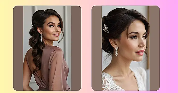 Seriously, this is the kind of hairstyle that makes you want to say “yes” to everything—like, yes to holding the bouquet, yes to giving a toast, and definitely yes to eating all the cake. It’s elegant without being stuffy, and stylish without looking like you spent six hours in a salon (even if you did!). Plus, those earrings are sparkling brighter than your future now that you’ve seen this hair inspo!