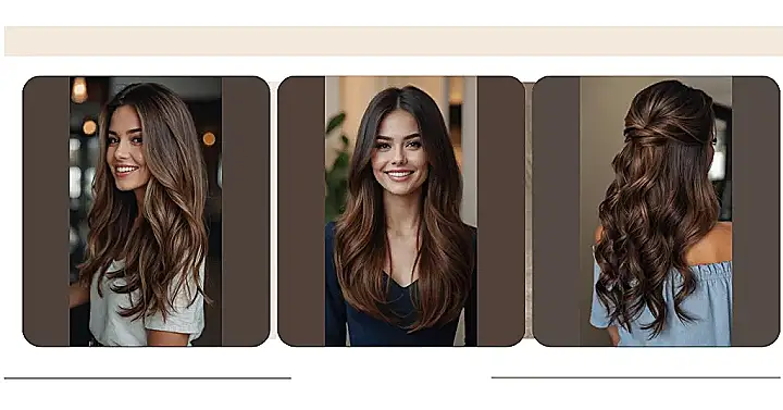 The image shows a person with gorgeous, long brown hair that looks super soft and bouncy. It’s like they just stepped out of a salon and their hair is ready for a photoshoot. Imagine the possibilities! You could totally rock a braid like a princess, or maybe a messy bun for that effortless, “I woke up like this” look.