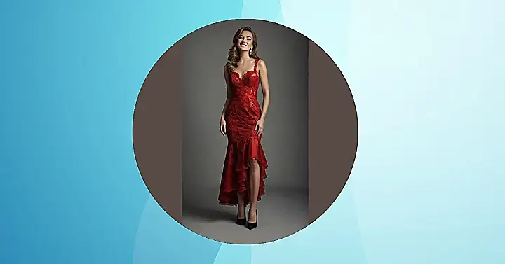 Forget having to choose between looking elegant and having fun; this dress does both with a dazzling smile, just like the model! With its sassy high-low ruffle and a splash of sparkle from those earrings, you’ll be twirling through the night like a total celebrity. Plus, it’s red, which means you’ll totally stand out in all those group photos – no blending into the background for you! Get ready to make some unforgettable memories, because this dress is practically begging for a grand entrance at any big event.