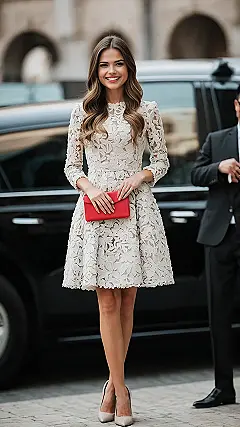 Thinking about your New Year’s Eve 2025 outfit already? This look is a total winner, ditching the usual sparkles for something a bit more ‘I woke up like this, but fancier!’ That beautiful lace dress, with its intricate details and a pop of bright red clutch, is giving major main character vibes, ready to greet the new year with a smile and maybe a slightly awkward attempt at a countdown dance. It’s sophisticated but still totally fun, perfect for when you want to look put-together without feeling like you’re wearing a costume.
