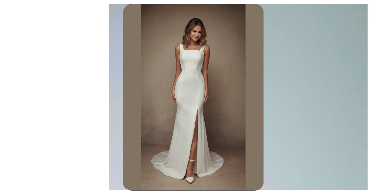 Choosing a modern minimalist wedding dress like this one means you’re basically signing up for maximum style with minimum fuss. Think about it: no giant puffy sleeves trying to steal the spotlight from your amazing smile, and no feeling like you’re wearing a fancy fortress instead of a gown. This kind of dress lets you move, groove, and actually enjoy all the food without feeling squished. It’s perfect for the bride who wants to be remembered for her effortless cool and beaming happiness, not for how many yards of fabric she managed to wrangle down the aisle!
