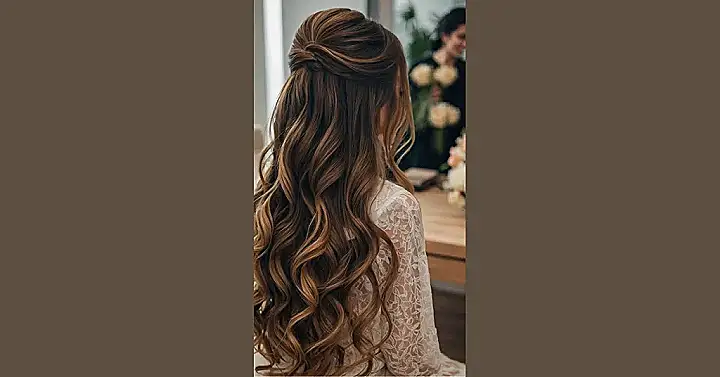 Ever thought about how a mix of soft curls cascading down your back while the top is elegantly pinned back could be the perfect touch for your special day? The idea of a half-up, half-down bridal hairstyle offers a beautiful blend of sophistication and grace that effortlessly complements a wide range of wedding themes and dress styles. Picture the intricate detail of a floral hair accessory delicately placed at the back serving as the finishing touch to this timeless and romantic look.