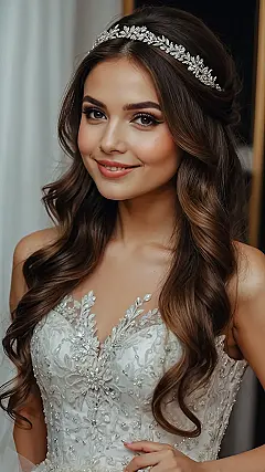 Picking an engagement hairstyle is kind of a big deal, because those pictures last forever, right? You want something that’s elegant but also feels like ‘you,’ and can survive all the hugging, posing, and happy tears. This half-up style is genius because it keeps some hair neatly off your face, letting that gorgeous smile shine, while still showing off those amazing long curls. Plus, that tiara isn’t just pretty, it’s probably secretly holding everything together so you don’t have a single hair crisis during your big announcement!