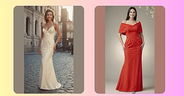 This dress, with its flowy satin fabric, looks so comfortable you could probably do a light jog in it (though we totally recommend gliding gracefully instead, for maximum effect!). Walking into a room wearing something like this will make you feel like you’re floating on a cloud of blush pink, with those cool, billowy sleeves adding a touch of drama that screams, “Yes, I *am* fabulous, and yes, my outfit deserves its own spotlight.” It’s the perfect blend of looking super fancy without actually having to sacrifice your ability to bust out a dance move or snap an epic selfie without restriction.