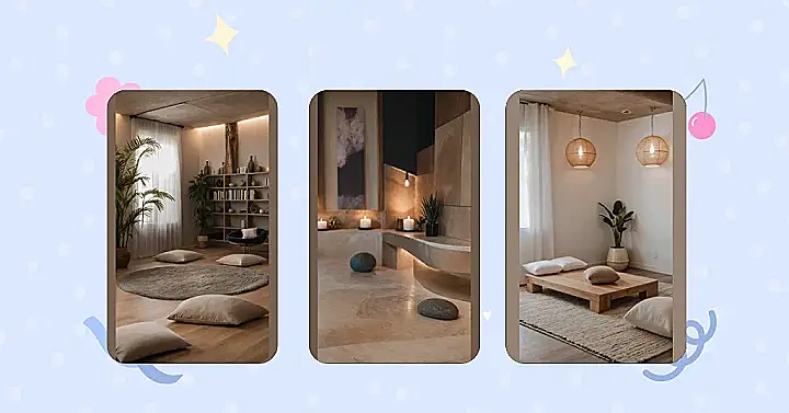 Got that feeling like your brain just ran a marathon after a day of classes and questionable cafeteria food? You need a healing room, pronto! Check out this epic de-stress zone in the picture – it’s got fluffy plants that probably whisper calming secrets and candles doing their best impression of “everything is fine.” It’s the perfect spot to escape the homework monster and recharge your social battery before it hits zero.