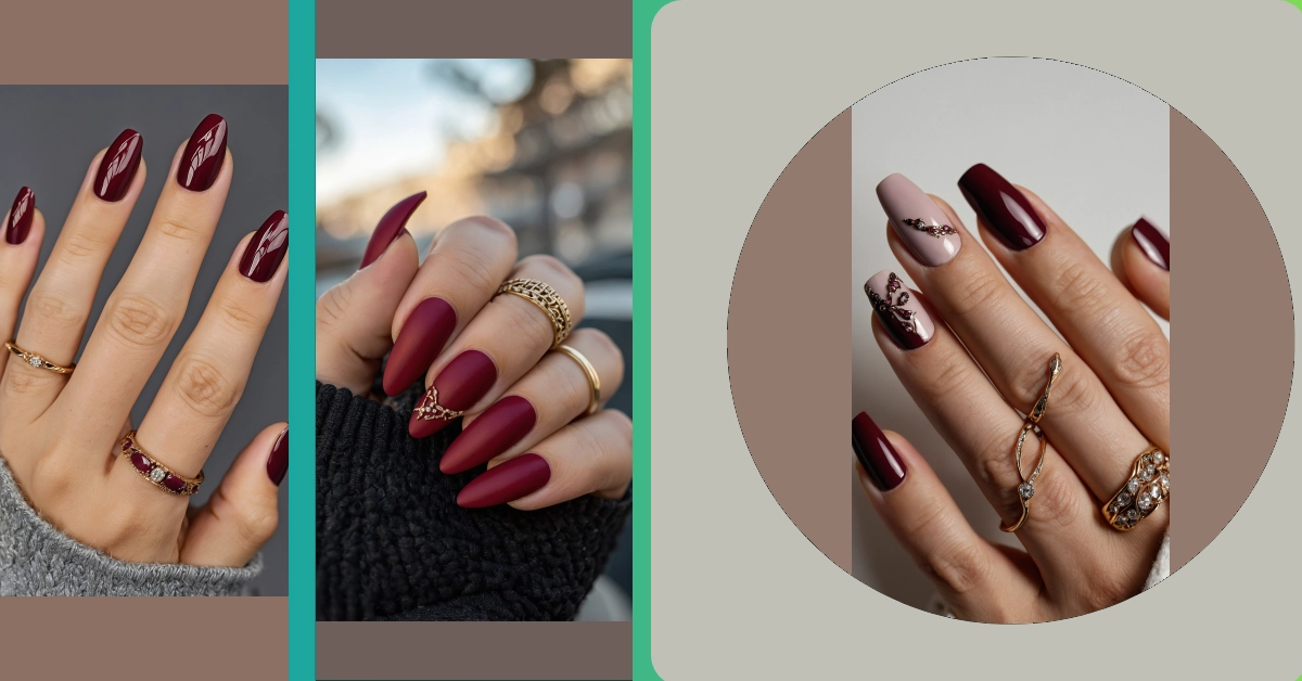For those who get their inspiration from the lighter side, the rich maroon shade pairs beautifully with soft pinks, creating a chic transition from dark to light. A dab of pink on a maroon nail can soften the look and make your fingers look model-worthy. Mix up a couple of designs, and you may just create your new go-to manicure!