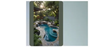 Step into a modern outdoor sanctuary where tranquil vibes meet trendy decor elements. Imagine unwinding in a backyard oasis that seamlessly blends contemporary style with lush greenery, creating a visually stunning retreat. The soft glow of string lights above, paired with sleek outdoor furniture boasting clean lines and plush cushions, sets the scene for unforgettable moments of relaxation under the open sky.