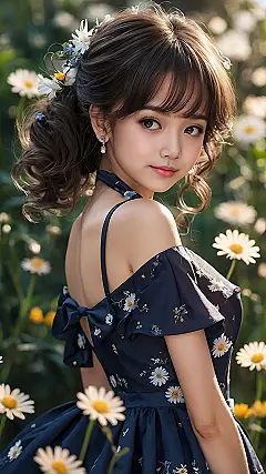 This isn’t just any pretty picture; it’s practically a little dose of sunshine for your device, making it the perfect candidate for your next cute wallpaper. Notice the adorable daisy-print dress, the delicate flowers in her hair, and that friendly gaze? It’s perfect for those moments when you need a quick pick-me-up or just want your phone to look as awesome as you are. So, if your current wallpaper is making you yawn, swap it out for this one and let the good vibes and ‘awww’ moments begin!