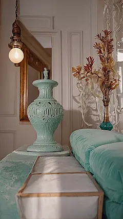 The chair in the corner might be the real star, though. With its wooden legs and comfy fabric, it’s like the friend who’s always up for anything—watching a movie marathon, playing board games, or just hanging out. You could imagine cozying up on that chair with a mug of hot chocolate and a good book, and just letting the world drift away. And even though it’s surrounded by some pretty fancy decor, it doesn’t seem at all out of place. Just like a good friend, it fits in perfectly with the classy vibe of the room, without taking itself too seriously.