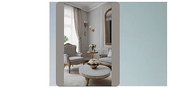 And don’t even get me started on the pristine white flowers and that super shiny marble coffee table. You just *know* this isn’t the spot for a movie night with popcorn; it’s more like a “sip your fancy sparkling water and discuss philosophy quietly” kind of place. The whole vibe screams “don’t spill anything, ever,” which honestly makes me want to test its limits with a rogue cracker crumb, just to see what happens in this perfectly polished paradise.