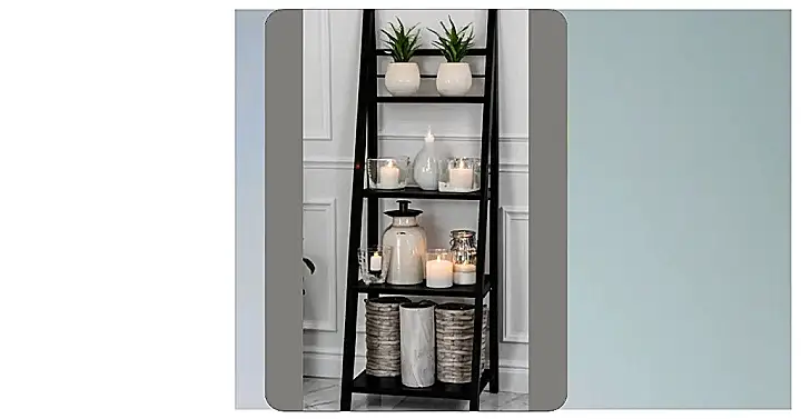 So, you wanna jazz up your living room, huh? Check out this cool ladder shelf! Forget dusty old bookshelves, this is a way more fun way to show off your stuff. You can stack books you *swear* you’re going to read, pop some cute storage boxes on there to hide all your secret snacks, and even throw in a framed picture of your pet looking extra majestic.
