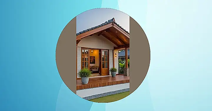 Forget those towering multi-story houses where you need a GPS just to find the kitchen! This bungalow is all about keeping things super chill and easy. With its crisp white walls and warm wooden doors and windows, it practically screams, “Come on in, kick off your shoes, and let’s have a snack without climbing a single stair!” It’s like the house itself is saying, “Why go up when you can just spread out and relax right here?” Plus, that cool terracotta roof looks ready for a tiny, friendly dragon to perch on it, just for fun.