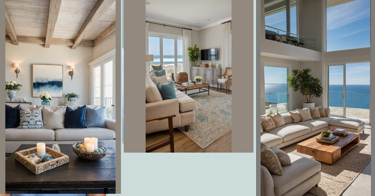 Stepping into this room is like instantly getting a VIP pass to the beach, minus the seagulls trying to steal your snacks. The huge windows basically scream “Ocean View!” while that mega-comfy couch whispers, “Nap time?”. It’s designed to make you feel totally relaxed, like you’ve just spent a perfect day by the water, but without the sand-in-your-shoes problem. This is where beachy vibes meet comfy-cozy style, making it the ultimate hangout spot.