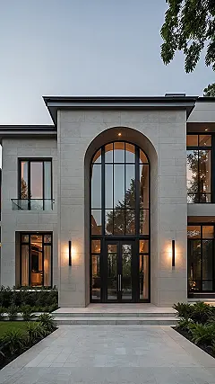 This isn’t just a house; it’s practically a real-life cheat code for architectural awesomeness! If you’ve ever scrolled through ‘best modern house’ pics online, this one probably just walked in and took the crown. With its super tall, arched window that looks like it could let in enough light to grow a rainforest indoors (or at least perfectly light up your TikToks), it feels less like a place to live and more like a high-end art gallery. Good luck trying to play hide-and-seek in this place – you’d need a GPS to find anyone!
