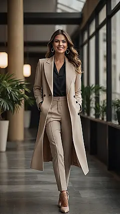 Take a look at this picture! Doesn’t she look like she’s ready to conquer the world, or at least absolutely nail her quarterly report? That sharp suit and confident stride are basically saying, “Yep, I’m here, and I’m in charge!” It’s kind of hilarious how putting on a great work outfit can make you feel like you suddenly have superpowers. You stand a little straighter, maybe even feel smarter. It’s like your clothes are giving you a secret boost of awesome, making tackling big tasks feel way less intimidating.