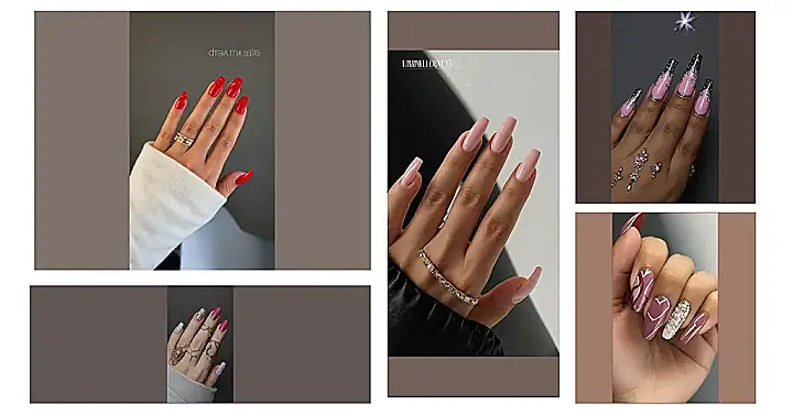 Seriously, these nails are goals! The intricate designs are so detailed and lovely, they’re practically tiny works of art. And those rings? They’re adding another layer of sparkle and sophistication. It’s the perfect combination of a fancy look and fun nail art. You’ll be the envy of everyone at school with these trendy, unique nails.