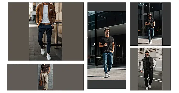 This isn’t just a stylish men’s outfit; it’s practically a superpower disguise. You could be heading to a chill hang-out, a family dinner where you want to impress grandma, or even just trying to look good while grabbing a snack. The simple colors make it super easy to match, so you won’t accidentally step out looking like a confused rainbow. And let’s be real, those crisp white kicks are so fresh, they probably deserve their own fan club. This look proves that sometimes, less truly is more, especially when you’re trying to avoid a fashion emergency.