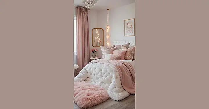 Whoa, check out this room that basically screams “ultimate chill zone!” With all those dreamy soft pinks and crisp whites, you could practically float away on a cloud of comfort. And those pillows? Let’s just say there are enough fluffy, squishy textures to cushion you through even the toughest homework sessions or the longest group chat debates. This isn’t just a bed; it’s a whole experience, proving that when it comes to teen girl room decor, more fluff always equals more fun (and better naps, obviously).