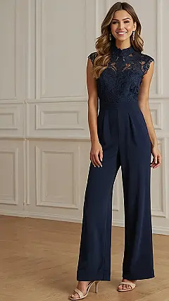 This jumpsuit is not your grandma’s boiler suit! It’s got that fancy lace top that screams “I’m ready for a party,” but the wide-leg pants keep it super comfy. Imagine yourself strolling into your school’s dance looking like a total movie star—but without the drama of a dress. This outfit is easy to wear, but still makes a statement. Think sophisticated, but fun – kind of like a delicious cupcake that’s also a healthy salad.