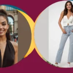 Catching some serious good vibes, this outfit is basically a cheat code for looking effortlessly cool. That black ribbed halter top isn’t just super comfy, it’s also doing all the heavy lifting in the style department. Paired with those light-wash jeans and a smile that could light up a whole room, it’s the kind of look that says, “Yeah, I just rolled out of bed, but I still look amazing!” Who knew looking this good could be so simple?