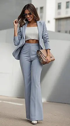 Adding a little bit of personality to a work outfit is key, and that’s what this whole vibe is about. Think of the blazer and pants as your main power-up, but then you add cool sunglasses or a trendy bag, maybe even a crop top underneath like the one in the picture, to make it yours. It’s like customizing your uniform in a video game, but in real life and for potential job interviews (or just looking extra sharp for a school presentation). It just proves you don’t have to be boring to be brilliant!
