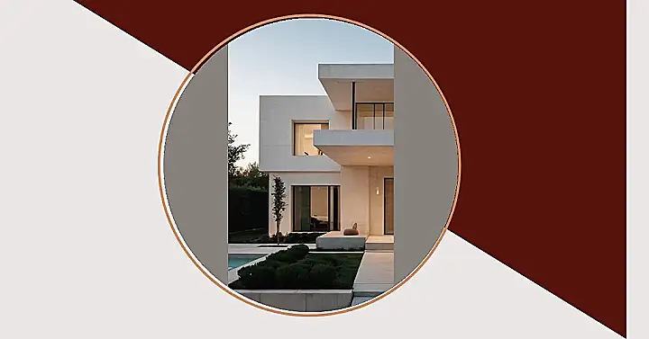 This house is like the opposite of a clown’s car: it’s all about clean lines and simple shapes. No crazy colors or decorations here! Just smooth white walls, a sleek door, and a few strategically placed plants. It’s kind of like a blank canvas – perfect for someone who wants to express their personality through their furniture and art, without being overwhelmed by a busy design.