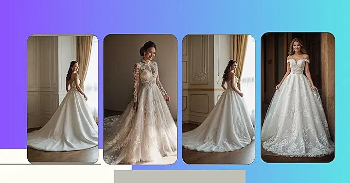 And let’s talk embellishments. Whether you’re into the princess look with a voluminous skirt or prefer a fitted beauty that clings in all the right places, we’ll showcase options that will make you swoon. With so many choices, you won’t be able to resist adding a touch of personalized flair, be it a statement belt or a dreamy detachable train.