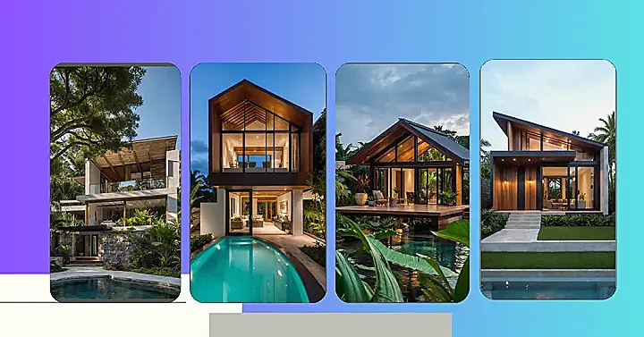 Wow, talk about a house that looks like it’s high-fiving a palm tree! This place is basically saying, “Why live inside when you can live *among* the awesome tropical stuff?” Sure, the keyword is ‘tiny tropical house design’, and this one looks pretty epic, but maybe ‘tiny’ just means it’s not a boring old castle. With huge windows everywhere, it feels like the whole jungle is your living room. Just try not to jump when a giant leaf taps on the glass – that’s probably just a friendly plant saying hi!
