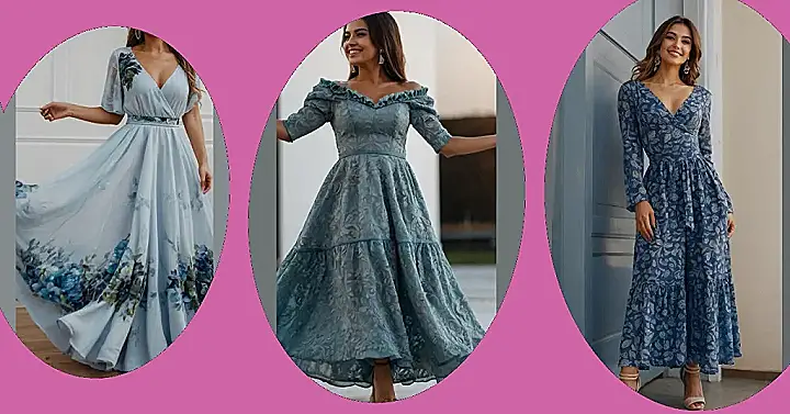 This blue floral frock is definitely giving us “fairytale princess” vibes! The flowy layers and delicate lace make it look like something right out of a storybook. You can almost picture this dress twirling around a ballroom, or maybe even a garden party – with a crown of flowers on top, of course! It’s a little bit whimsical, a little bit romantic, and definitely a lot of fun to wear.