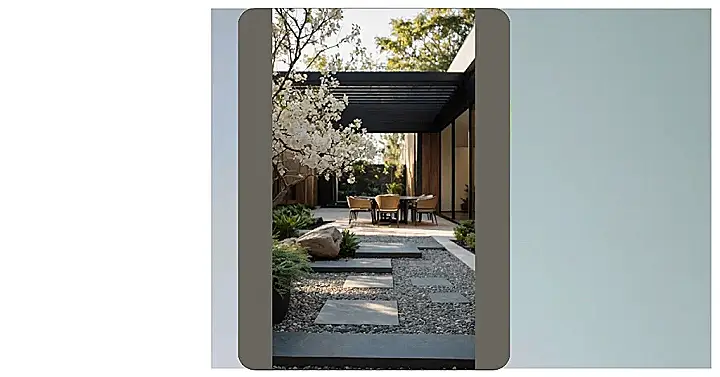 Walking into this garden feels less like dodging pigeons in Venice and more like chilling at a super-stylish modern villa in Tuscany. See those cool, big stepping stones? They totally guide you through like your own personal runway, minus the paparazzi. And those plants? They’re standing tall and looking sharp, probably whispering “Ciao!” to each other when no one’s listening and secretly wishing they were growing lemons for actual limoncello.