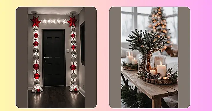 Your hallway might feel like just a place to get from point A to point B, but check out this epic DIY winter glow-up! Who needs a red carpet when your doorway can look this fabulous? Those fluffy white garlands strung with sparkling lights are basically bringing a snowdrift indoors, minus the wet socks and shivering. And those massive red and silver ornaments? They’re practically ballroom dancing their way down each side, making sure everyone knows this is the coolest spot to walk through. It’s proof that with a little creativity, your door can go from ‘just there’ to ‘whoa, that’s awesome!’ for the whole winter season.